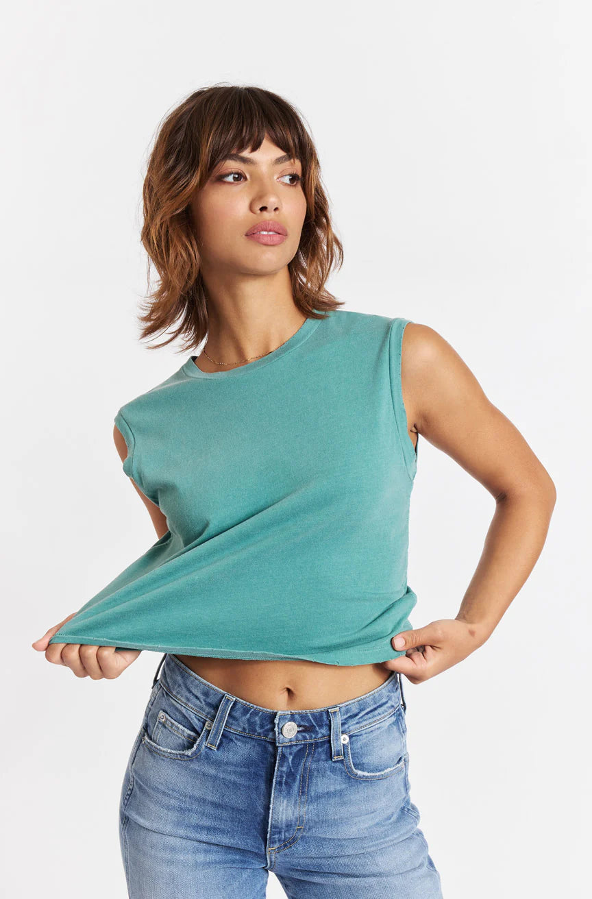 the perfect cropped, sleeveless tee to wear with high waisted jeans or shorts