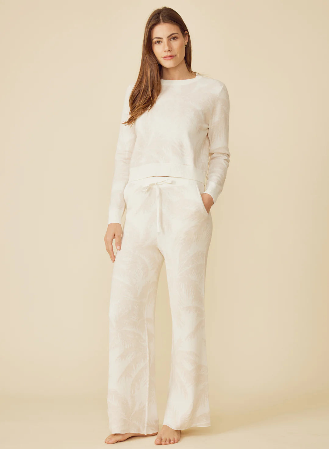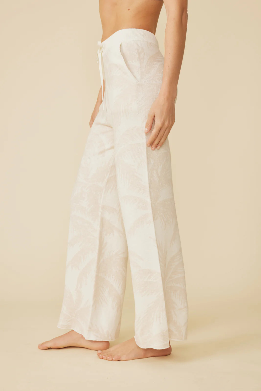 a classic lounge pant in a beautifully subtle palm tree jacquard print