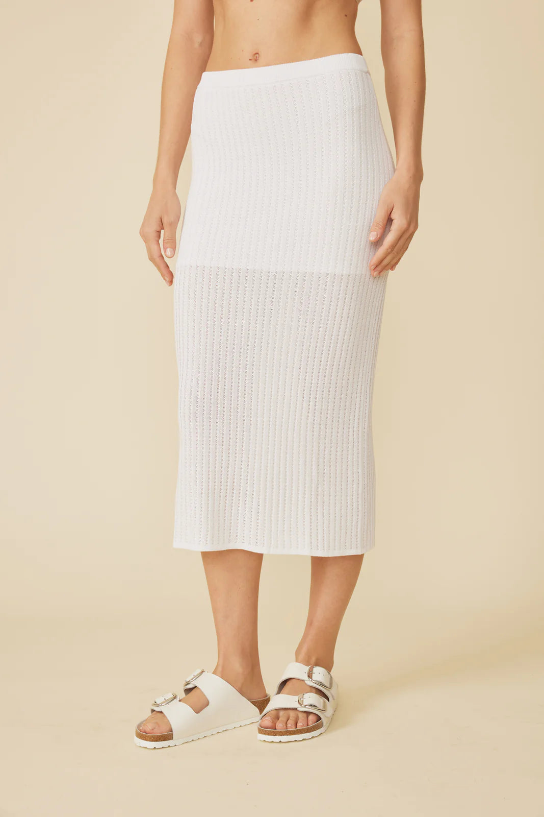 knit in a lightweight feminine pointelle stitch in an easy skirt silhouette, to be worn with your favorite t-shirt or pair perfectly back to the luka top