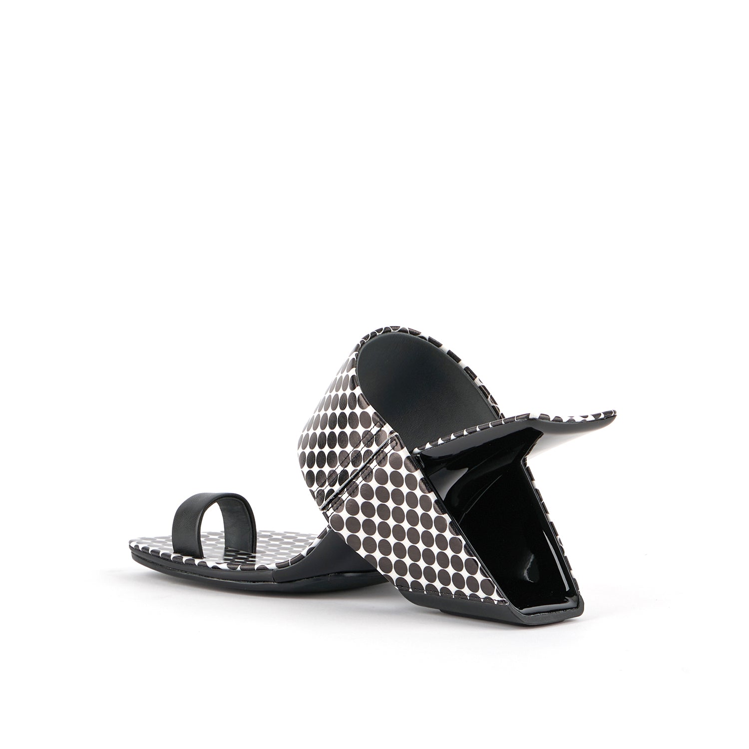 the loop toe hi is a high heel toe ring sandal featuring a floating footbed that slips through a loop, functioning as both the heel and the upper